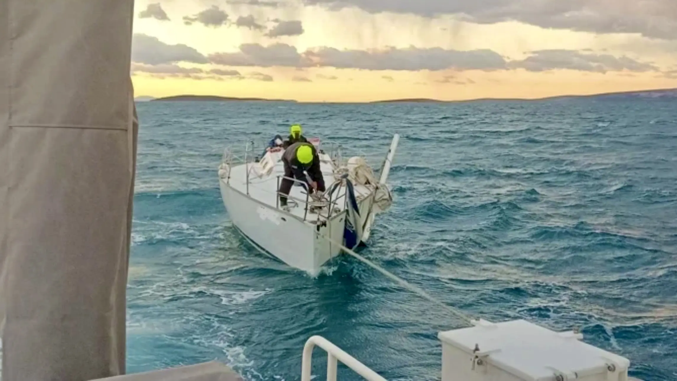 Od početka akcije održavana je telefonska komunikacija s tročlanom posadom, dvoje državljana Hrvatske i jedna državljanka Slovenije, kako bi se spriječila panika i osiguralo ispravno ponašanje i postupanje posade na oštećenoj jedrilici tijekom nevremena na moru, do njihova pronalaska.