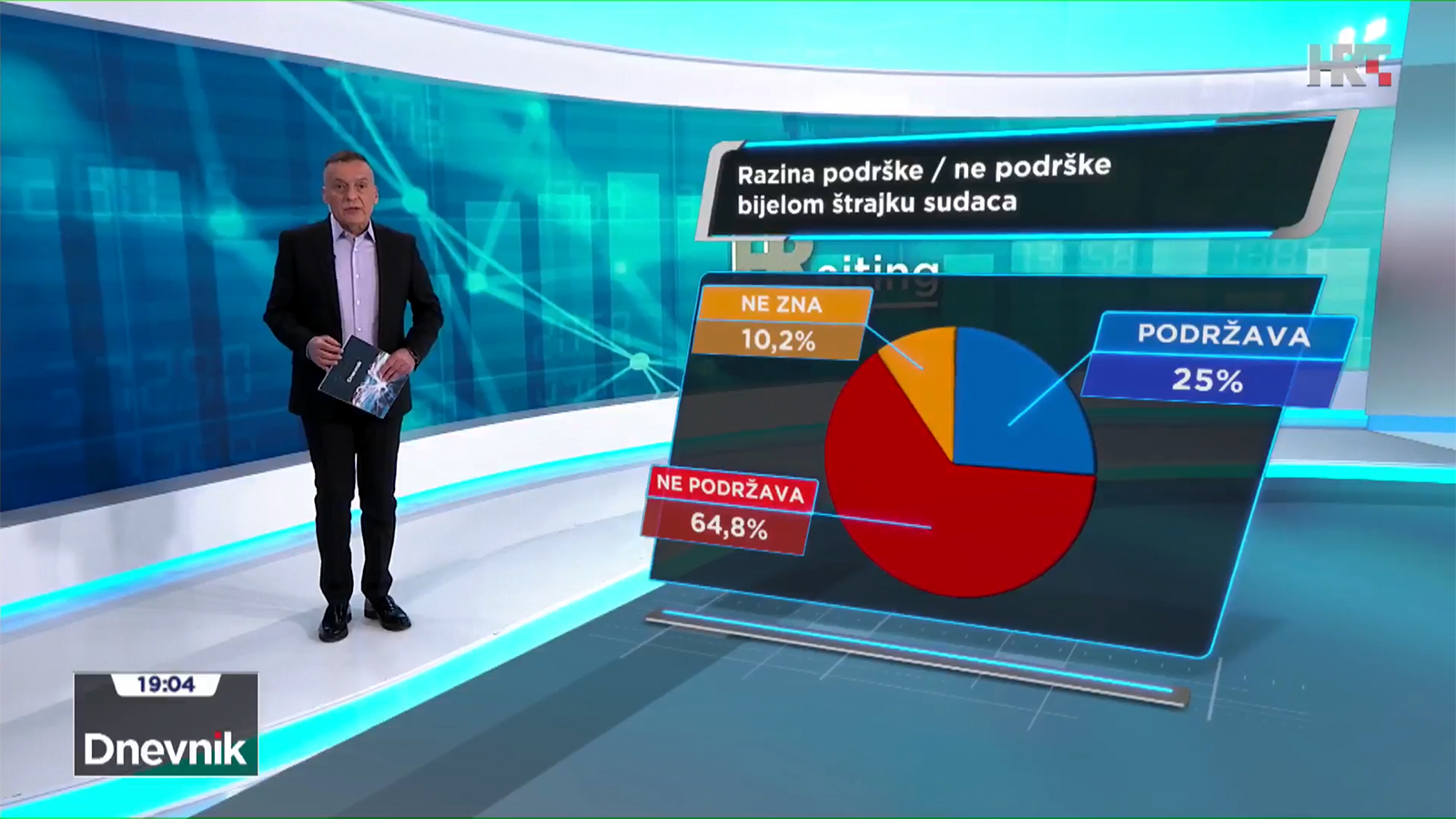 Velika većina građana ne podržava bijeli štrajk sudaca, pokazala je nova anketa koju je predstavio HRT.