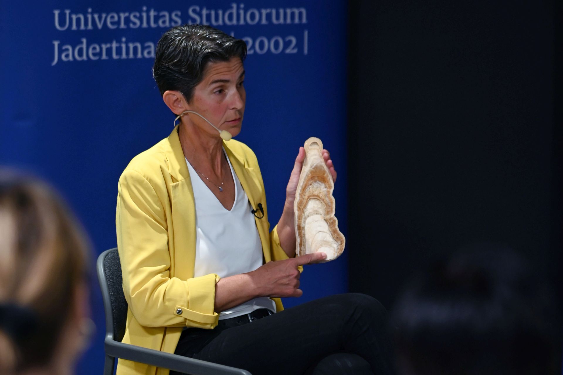 Istraživanje potopljenih siga je dosta riskantno i skupo, jer ronioci ne znaju kakve su kad ih uzimaju, pa se na kraju prebacila na kopnene sige, odnosno monitoring siga od vršnog dijela Velebita do Dugog otoka. Kako bi se odradile biokemijske analize dio vremena je provela u Australiji. A zašto je ovo područje toliko zanimljivo istraživačima?, pitala ju je moderatorica Ivana Zrilić.