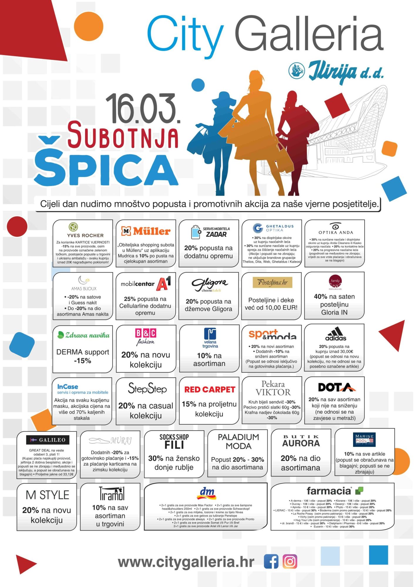 Novi vikend donosi novu „Subotnju špicu“ u centru City Galleria! Ovu subotu, 16. ožujka, cijeli dan nudimo mnoštvo popusta i promotivnih akcija, zato iskoristite dan za posjet vašem omiljenom centru u srcu grada.
