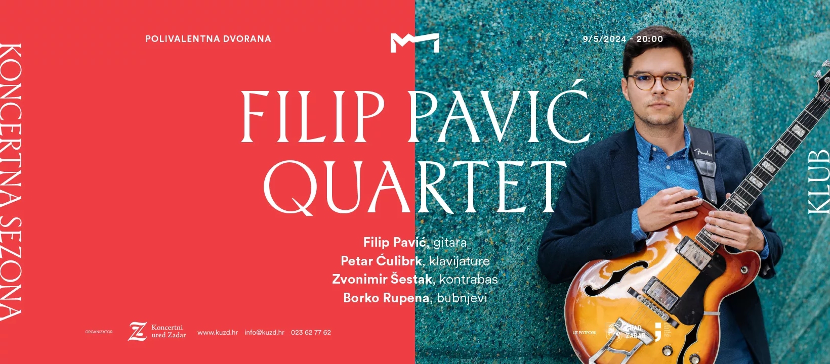 U sklopu ciklusa Klub zadarske koncertne sezone, u četvrtak, 9. svibnja nastupit će Filip Pavić Quartet. Koncert će se održati u Polivalentnoj dvorani Providurove palače s početkom u 20 sati.