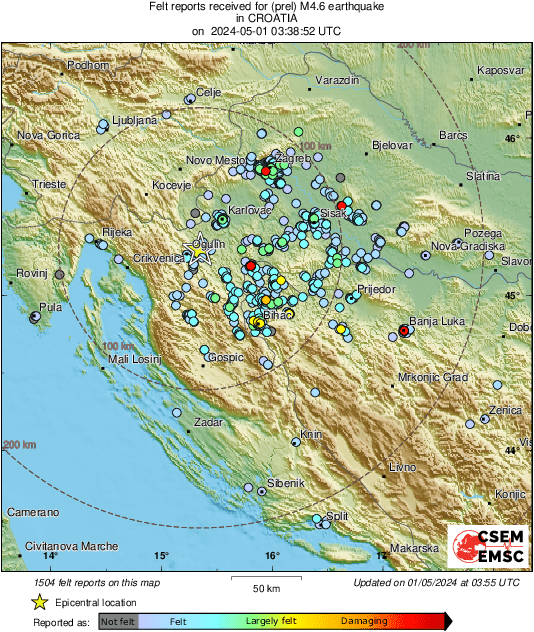 Podsjetimo, prvotna procjena jačine potresa koju je objavio EMSC bila je 4,9 da bi kasnije bila korigirana na 4,6 po Richteru.