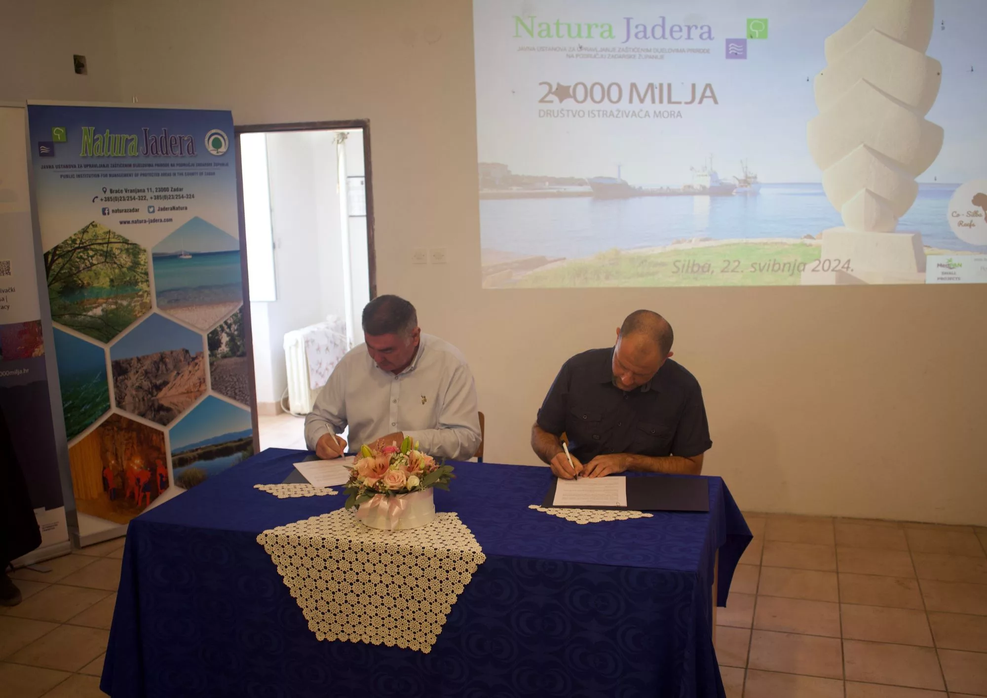 NATURA-JADERA javna ustanova za upravljanje zaštićenim dijelovima prirode na području Zadarske županije sklopila je s Društvom istraživača mora – 20000 milja Ugovor o skrbi o područjima ekološke mreže HR3000053 Silba – podmorje i HR4000025 Silbanski grebeni. Ugovor o skrbi predsjedniku Društva istraživača mora „20000 milja“ Hrvoju Čižmeku uručio je ravnatelj NATURE-JADERE Damir Perić.