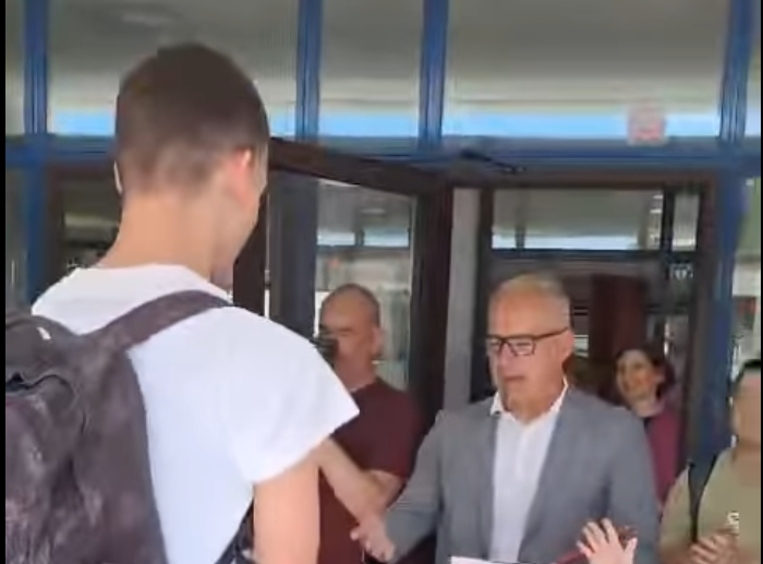 Tim povodom njegovi su mu školski prijatleji kao i nastavnici priredili doček.