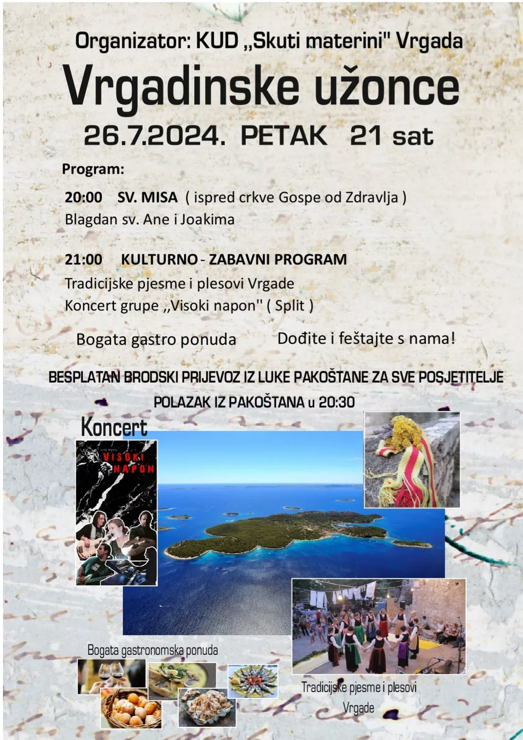 U petak, 26. srpnja na vrgadi održat će se manifestacija Vrgadinske užance.