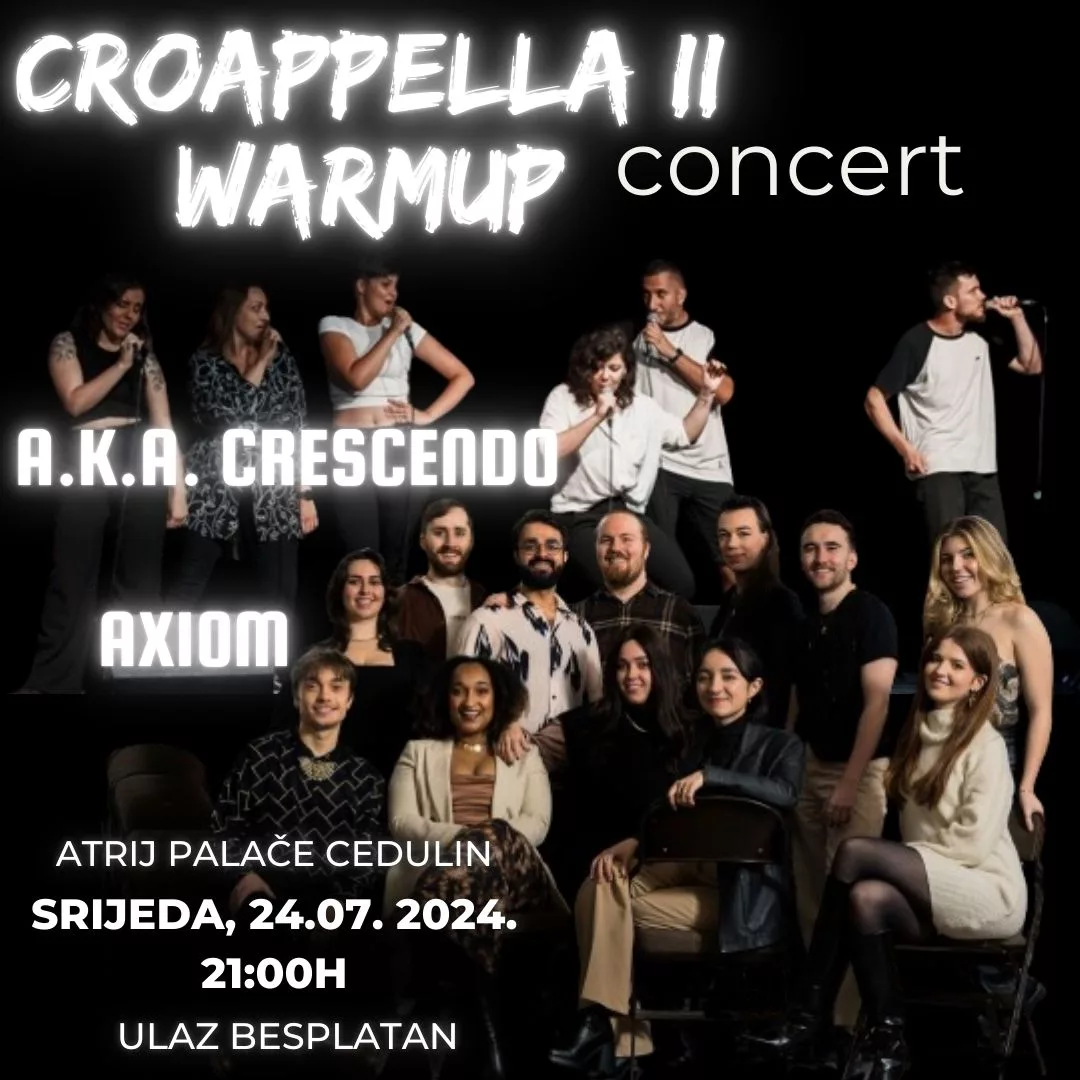 Ovaj koncert je savršeno zagrijavanje za CROappellu II i jedinstvena prilika da publika osjeti djelić onoga što ih očekuje na finalnom koncertu festivala, koji će se održati u nedjelju, 28.7., na zadarskom Forumu u 21:30 h!