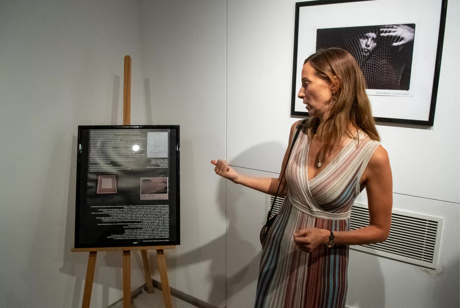 Izložba prikazuje najbolje radove ovogodišnjeg fotografskog natječaja, inspiriranog Hitchcockovim kultnim filmovima kao što su “Sjever-sjeverozapad”, “Opsjednut”, i “Nazovi M radi umorstva”. Ono što izložbu čini još posebnijom je prvi put izložen autoportret Alfreda Hitchcocka, kojeg je ovaj legendarni redatelj ostavio poznatom zadarskom fotografu Anti Brkanu.