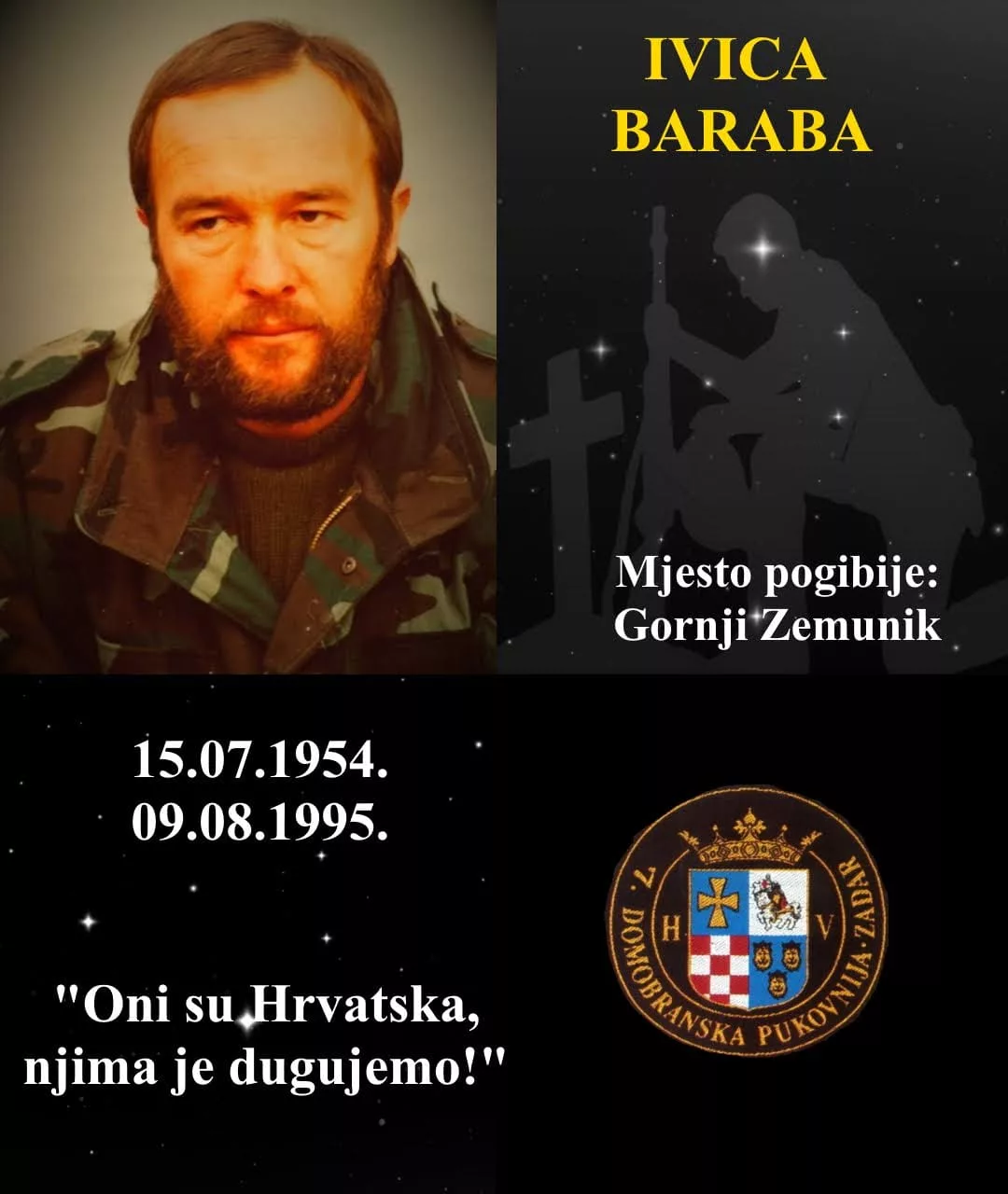 Nakon uspješno izvedene operacije „Oluja“ 09. Kolovoza 1995. godine, prilikom obilaska oslobođenog područja u Zemuniku Gornjem od protuoklopne mine pogiba hrvatski časnik Ivica Baraba, pripadnik 7. Domobranske pukovnije Zadar.