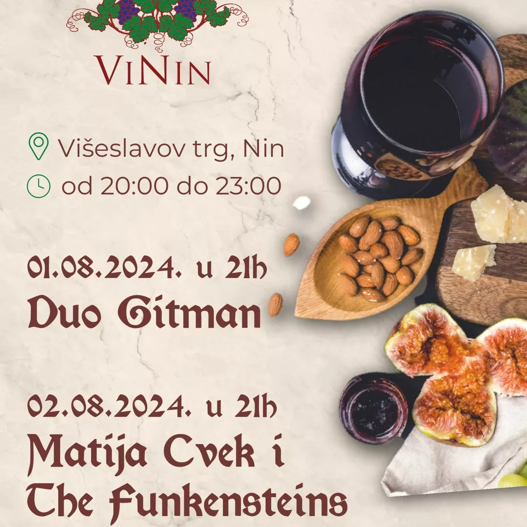 – Upoznajte proizvođače vina i delicija iz Zadarske županije i drugih dijelova Hrvatske, kušajte njihove vrhunske proizvode i uživajte u bogatom programu. Duo Gitman prvu večer i Matija Cvek & The Funkensteins druge će se pobrinuti za nezaboravnu glazbenu atmosferu. Vidimo se 01. i 02. kolovoza 2024. u Ninu!, pozvali su iz Nina.