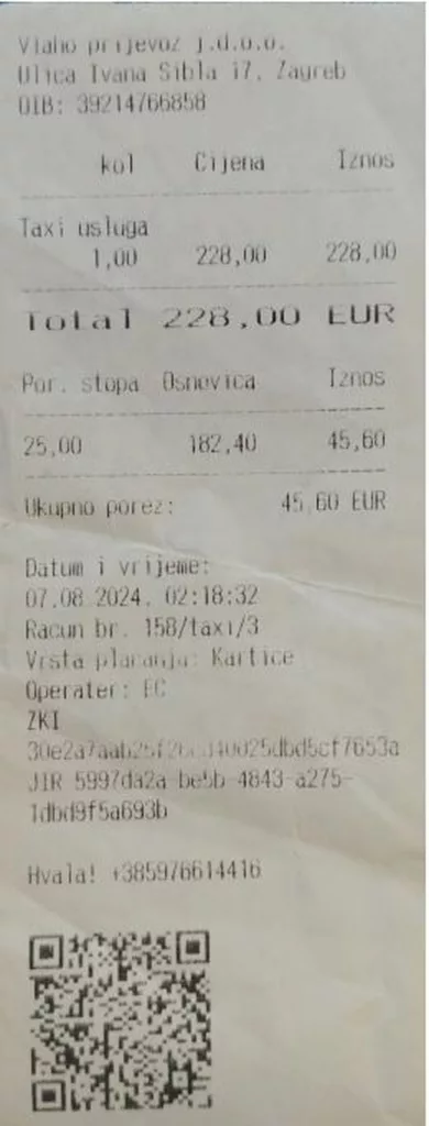 Još je jedan čitatelj doživio je neugodno iskustvo tijekom prijevoza taksijem. Noćnu vožnju od centra grada Zagreba do mjesta Soblinec platio je 228 eura.