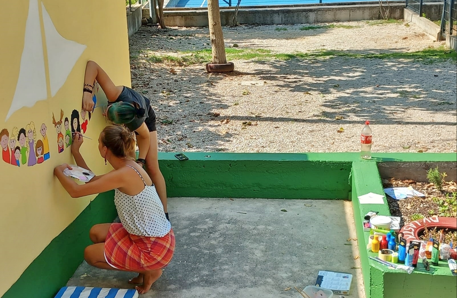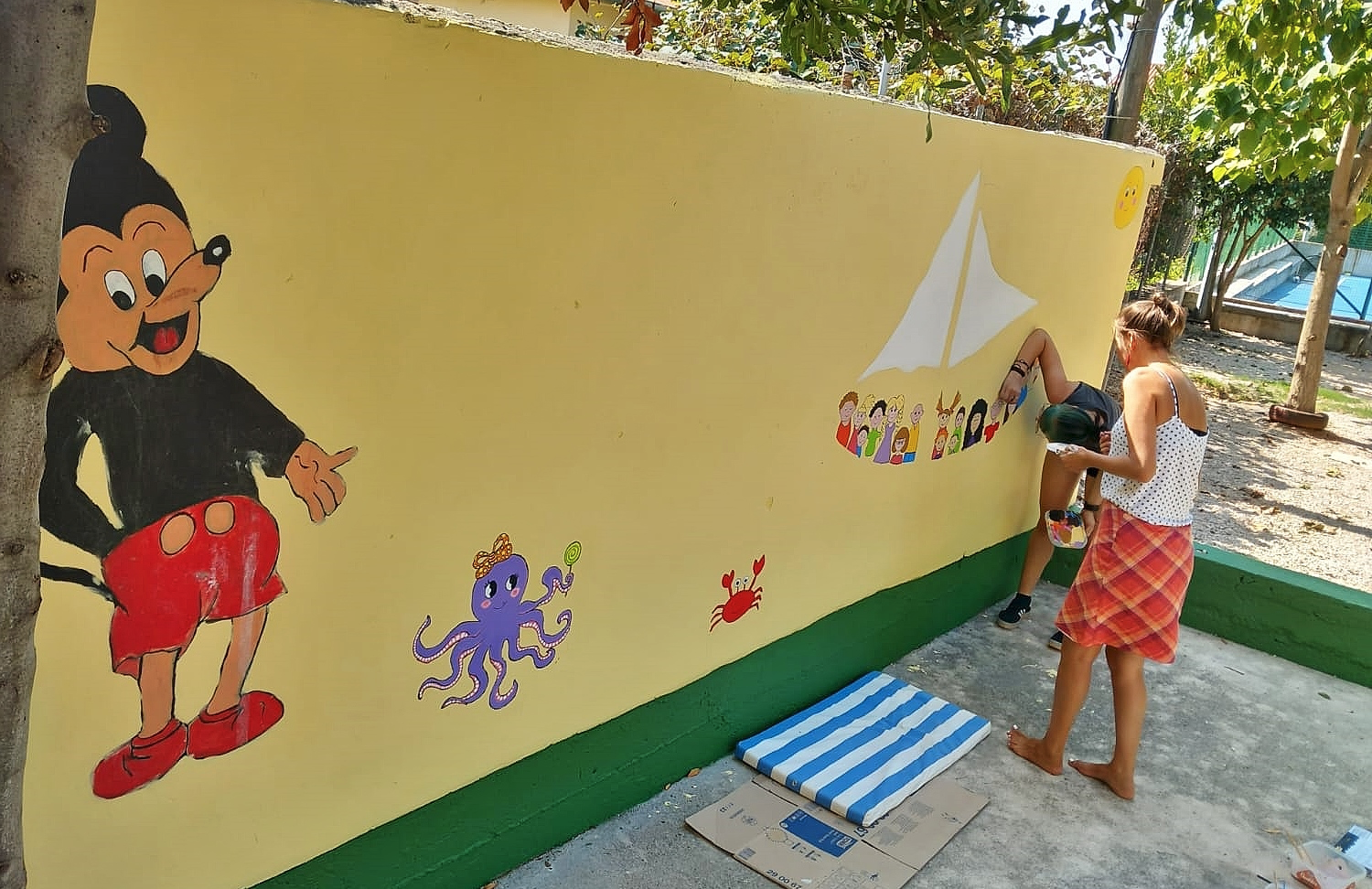 Šarena dobrodošlica realizirana je u suradnji s lokalnim umjetnicama, Tinom Belić i Gallom Soldan, nekadašnjom polaznicom vrtića, ali i roditeljima, odnosno grupom mama koje su se priključile Tini i Galli.