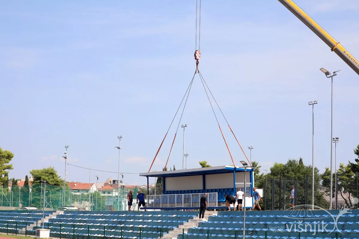 Nakon postavljanja novih reflektora na središnjem nogometnom terenu u Športskom centru Višnjik, danas je započelo i postavljanje nadstrešnice sa sjedalicama iznad postojeće tribine za gledatelje. Ovi radovi dio su redovitog plana obnove, unaprjeđenja i razvoja nogometne infrastrukture u ŠC-u Višnjik.