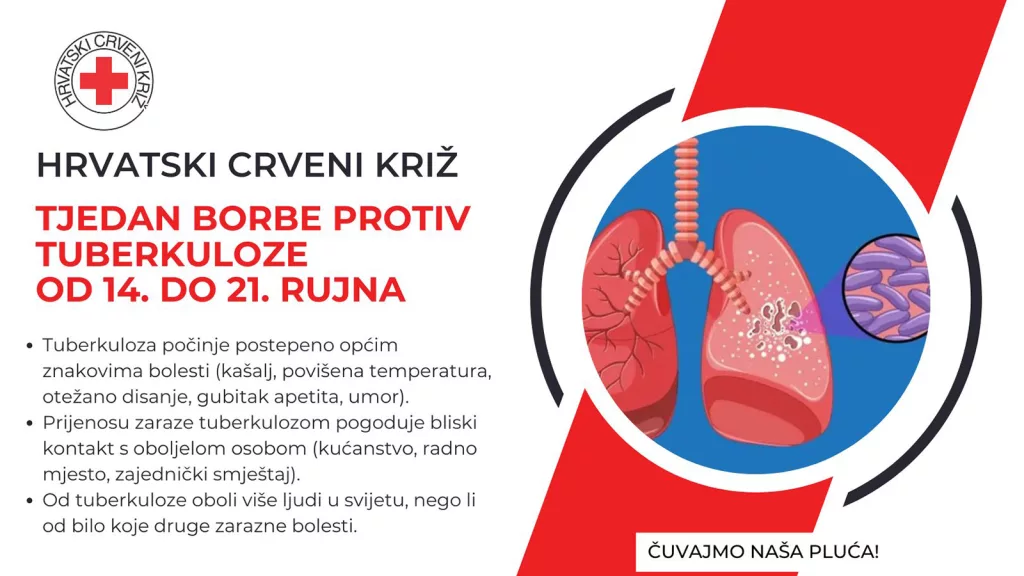 Hrvatski Crveni križ svake godine od 14. do 21. rujna obilježava Tjedan borbe protiv tuberkuloze kao zajedničku akciju društava Crvenog križa a u suradnji sa zdravstvenim ustanovama, čime se želi podsjetiti na važnost sprečavanja, ranog otkrivanja i pravilnog liječenja tuberkuloze u našoj zemlji.