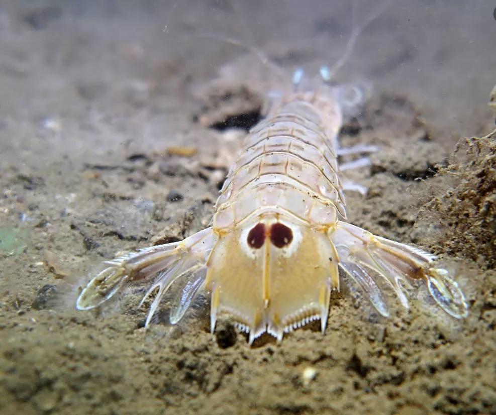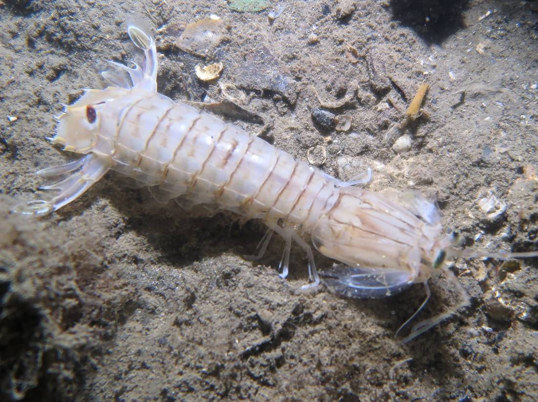 Na samo 12 metara dubine, u centru grada, Đani je prilikom noćnog zarona uspio snimiti rijetko morsko stvorenje – raka bogomoljku (Squilla mantis).
