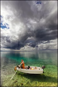 U proslovu kataloga o ovogodišnjoj izložbi publicist i majstor fotografije Ante Jaša Ekscelencija i Artist FIAP-a kaže: „Ocjenjivački odbor Glavnom nagradom „Otok i more“ nagradio je Borisa Kačana za svjetlopis „Usmjerena plovidba“. Autor je snimio usamljenu barku u plovidbi morem za vrijeme potpune utihe. Na tamnoj modrini mora povi brodica s dva ribara iz donjeg lijevog kuta u gornji desni kut na slici. Uz barku streličarski se šire valići osvijetljeni žarkim večernjim svjetlom.