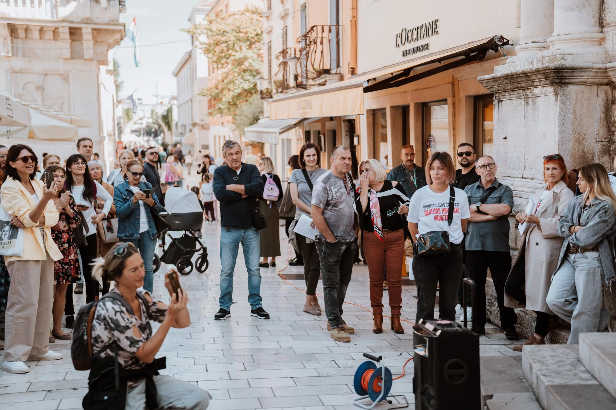Pod geslom “Dignimo glas za spas” u organizaciji Građanske inicijative “Vratimo Hrvatsku Hrvatima”, danas je na Narodnom trgu održan mirni prosvjed na kojem je glavna tema bila nekontrolirana zamjena stanovništva koju provodi trenutna sluganska vlast uvozeći strane radnike bez ograničenja kvota za određene poslove i sl.