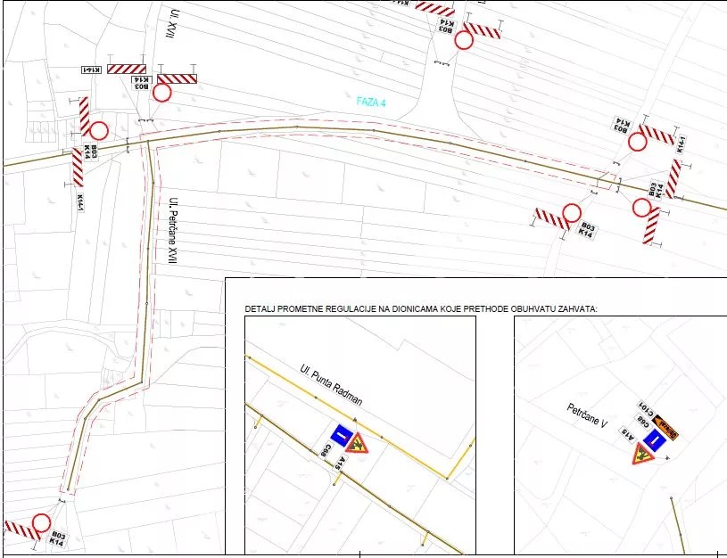 Obavještavaju se vozači u cestovnom prometu da je zbog izvođenja radova društva EURO PROJEKT d.o.o. na fekalnoj i oborinskoj kanalizacijskoj mreži u ulici XVIII u naselju Petrčane (FAZA 4) od danas na snazi privremena regulacija prometa.