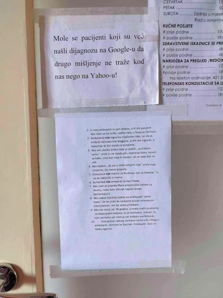 U ovoj su ordinaciji “Google pacijentima” tako uputili zanimljivu poruku. Posebice se ona odnosi na one koji traže “drugo mišljenje”.