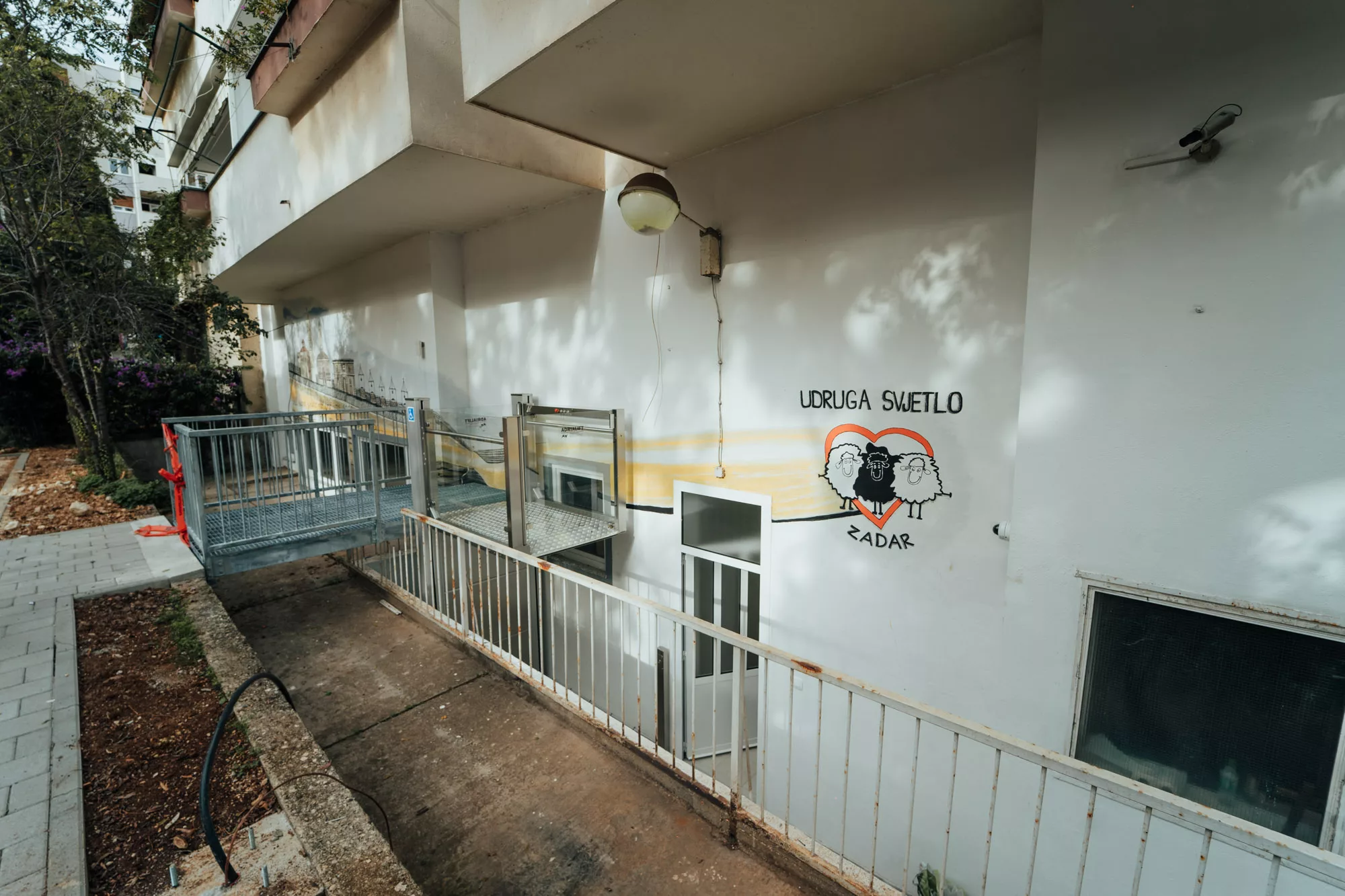 – Kad nam je Grad Zadar početkom ove godine dao na raspolaganje da pogledamo ovaj prostor, znali smo u startu da će biti problem prilaz samom prostoru. Radi se o stepenicama, a mi imamo teže pokretne korisnike i korisnike u kolicima i nakon borbe na sve moguće načine konačno je došlo do odblokiravanja proračuna i Grad Zadar je isfinancirao lift rampu za spuštanje do prostora do našeg prostora. Što se tiče rampe, to je sredstvo kojim se služimo svaki dan jer imao korisnike u kolicima i teže pokretne i koji imaju mentalne barijere pa ne mogu stepenicama tako da oni preko lifta dolaze kod nas u poludnevni boravak u prostorije same udruge, izvijestila nas je Iva.