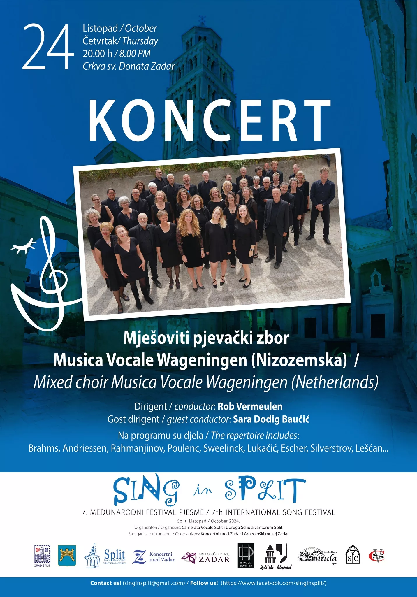 Koncertni ured Zadar poziva na koncert Mješovitog pjevačkog zbora Musica Vocale iz Nizozemske koji će se održati večeras u crkvi sv. Donata s početkom u 19 sati u okviru festivala SING in SPLIT.
