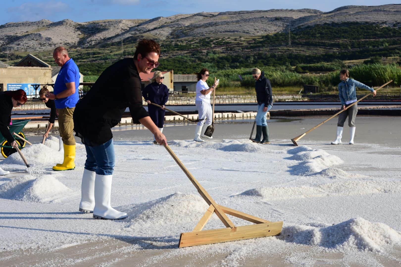 Nakon večeri ispunjene dobrom glazbom i hranom, jutro petka bilo je rezervirano za program „Jutra u poljima soli“ gdje su žene imale priliku iskusiti kako se žgriba sol i naravno, žene su to jako dobro odradile. Sol su žgribale žene iz udruge Žene za otok rame uz rame s djelatnicama Solane Pag.