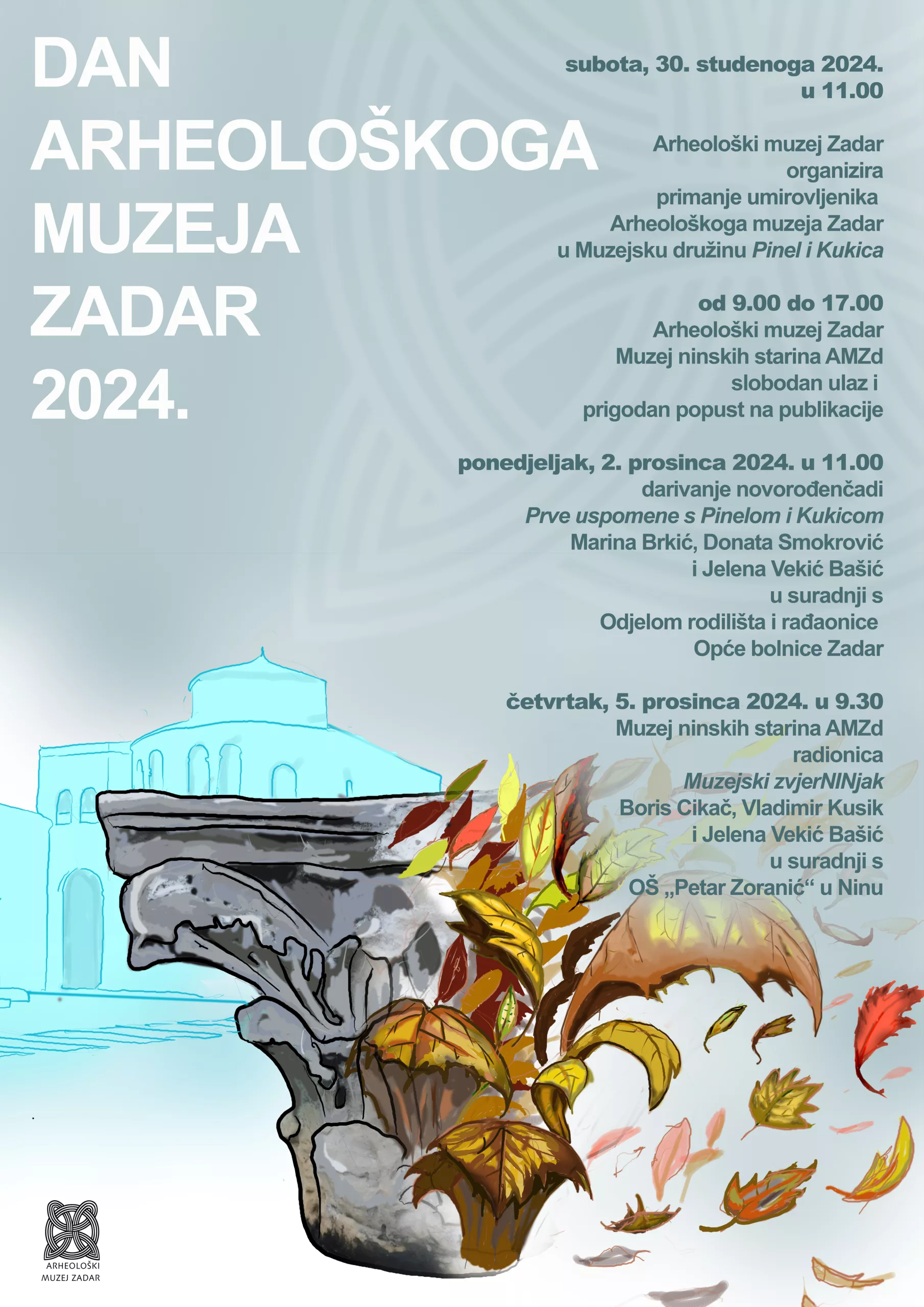 Program obilježavanja završavaju u četvrtak, 5. prosinca u 9.30 radionicom „Muzejski zvjerNINjak“ autora Borisa Cikača, Vladimira Kusika i Jelene Vekić Bašić. Radionica će se održati u Muzeju ninskih starina AMZd.