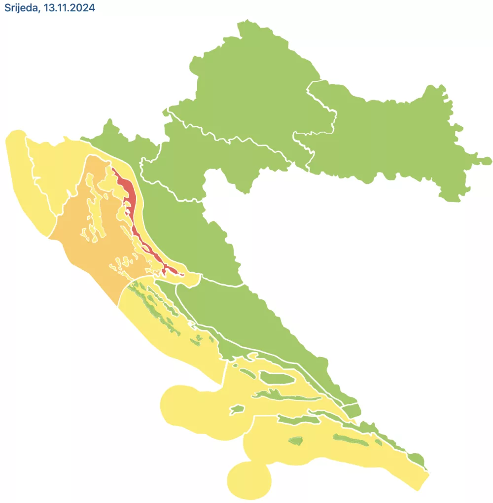 “Vrijeme je vrlo opasno i podrazumijeva visoku razinu opasnosti za zdravlje, pa i za život opasne situacije, posebice pomorcima. Također, prisutan je i značajan rizik od štete za obalnu infrastrukturu. Budite svjesni opasnosti i obratite pozornost i pratite najnovija vremenska izvješća. Savjetujemo javnost da izbjegavaju putovanja i boravak blizu ugroženih obalnih područja. Vrlo je vjerojatno da trajekti neće ploviti pa ako putujete, pratite informacije o prometu”, upozorio je DHMZ.