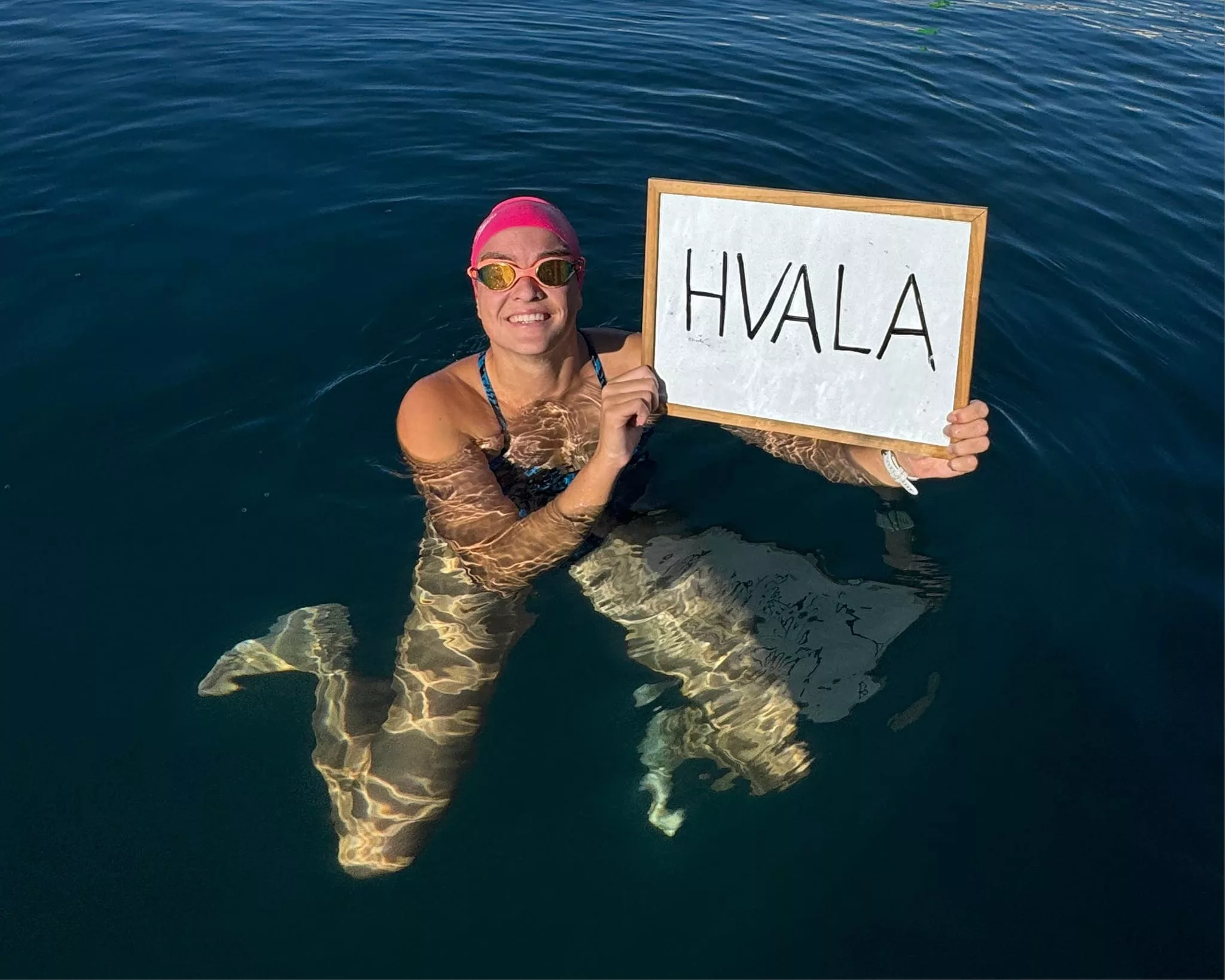 Hrvatska daljinska plivačica Dina Levačić završila je svoj humanitarno-sportski projekt “104 Dalmatinca”. Oplivala je 104 otoka, otočića ili hridi ukupne oblalne linije cca 160 km.