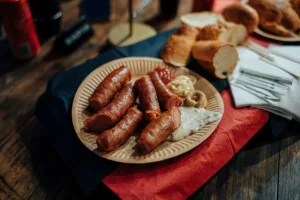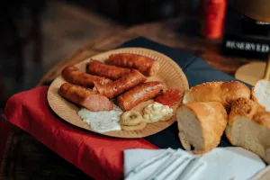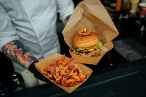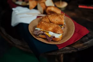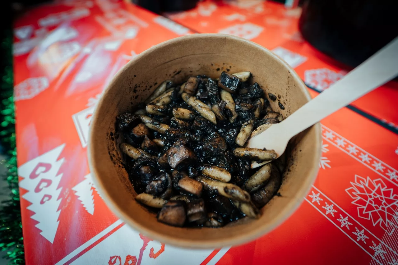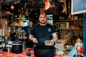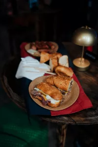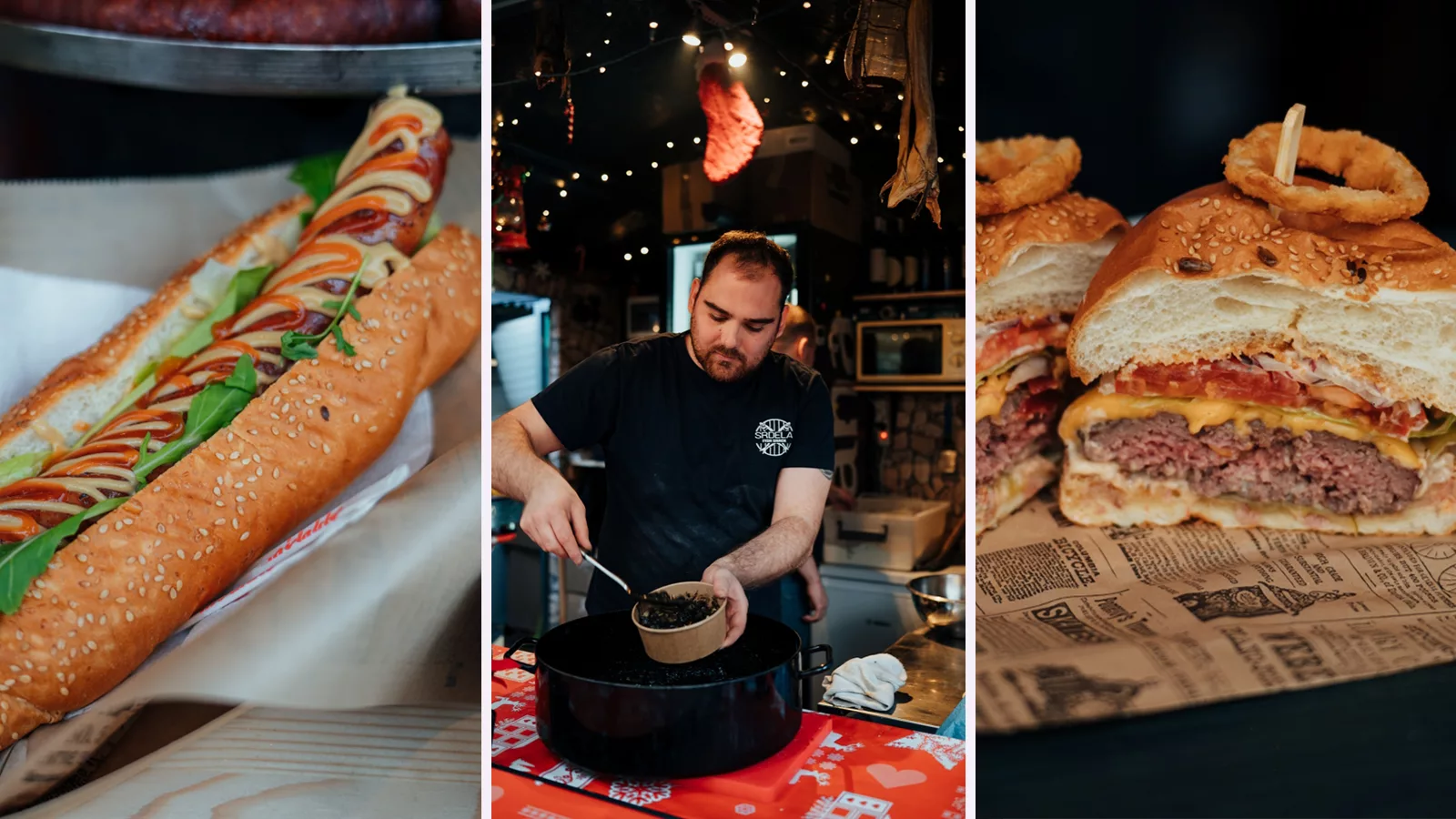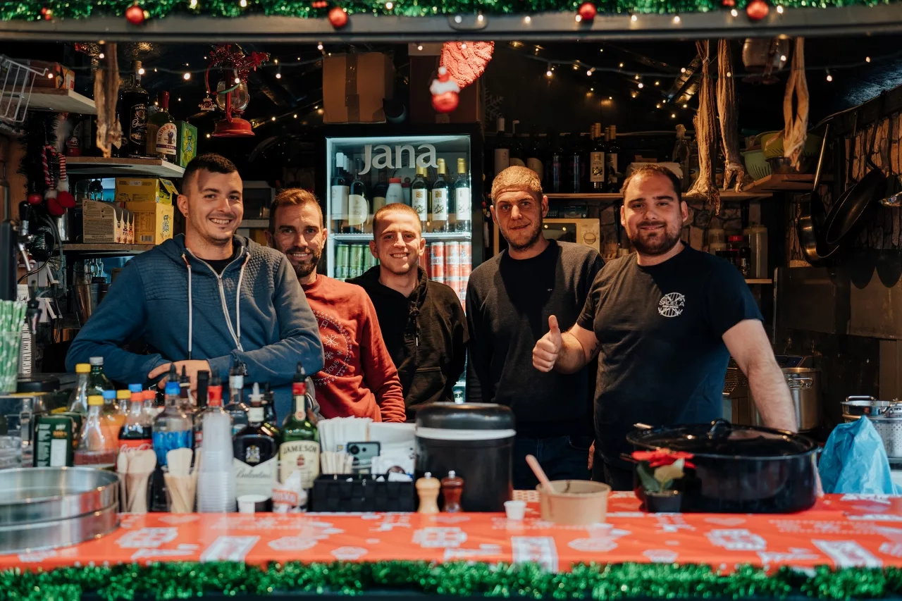 Ono što nas je posebno razveselilo bili su sendviči sa domaćom pancetom i ramstekom kidanim na trakice u kojem je meso bilo mekano i ukusno te ga se svakako isplati probati. Od priloga u njega idu i tartar, cheddar sir i krastavci. Ova kućica u ponudi ima razna mesna jela i selekciju pića, a može se pohvaliti i najboljim pogledom na ovogodišnjem Adventu budući je prva na Trgu Pet bunara, odmah nasuprot pozornice.