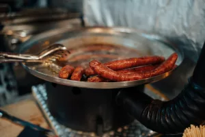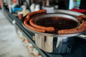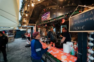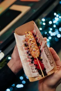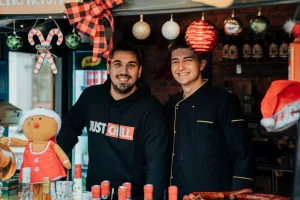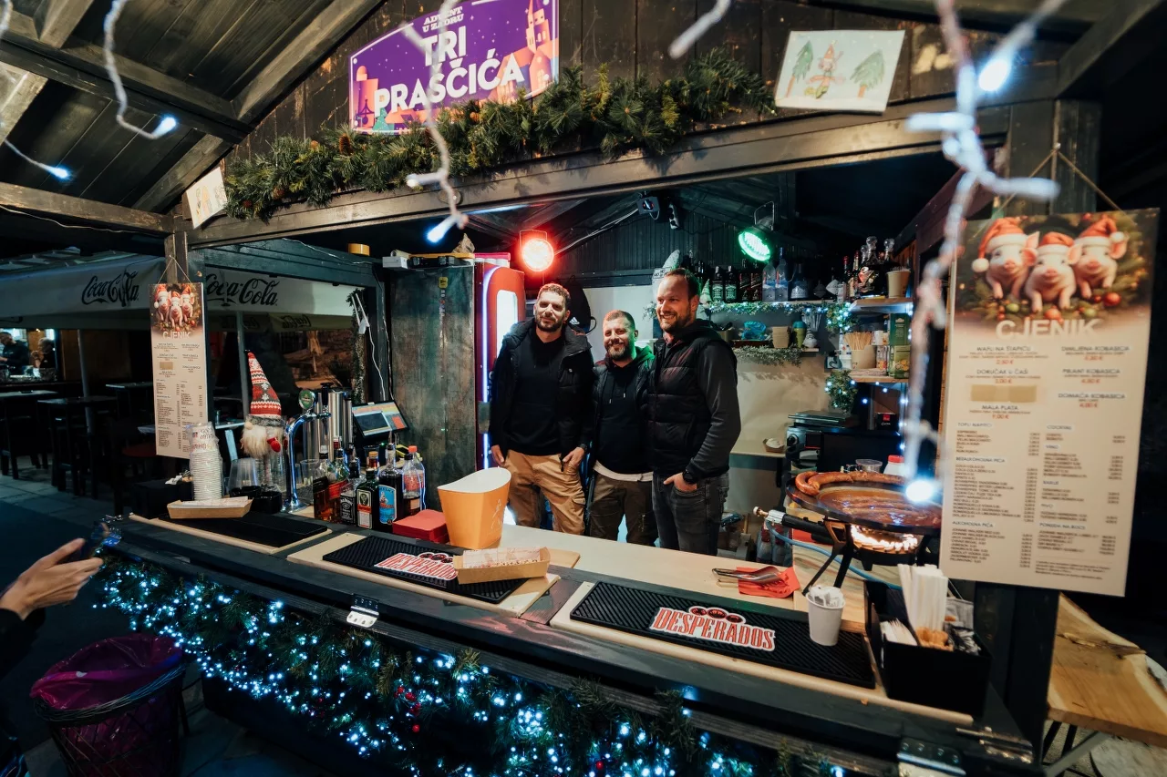 Kućica imena Tri praščića smjestila se ispred terase konobe Skoblar i od hrane u ponudi ima vafle na štapiću, churrose i kobasice u raznim varijantama. I oni su debitanti na ovogodišnjem Adventu. Po preporuci smo popili topli koktel sa sokom od jabuke i cimetom, a na bazi ukusnog likera od jabuke koji zamamno miriše, a i dobro će doći za ugrijati se kad se temperatura malo spusti.