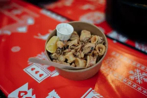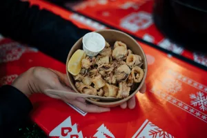 Ova kućica jedina nam donosi isključivo morske plodove u svojoj ponudi. Mlada ekipa iz Kali na otoku Ugljanu prvi se put službeno predstavlja na zadarskom Adventu, a ljubitelje morske hrane razveselili su činjenicom da svaki dan imaju drugo kuhano jelo, naravno uz svoju standardnu ponudu. Nama su se pohvalili sipom s pljukancima koju je majstor Lari Longin doveo do savršenstva, a onda i hrskavim lignjama na kolutiće koji su nakon sipe došli kao desert. Svaki dan na kućici nude frigane srdele i inćune, frigane girice, lignje na kolutiće i pohane inćune – sve iz Jadrana i posebno akvatorija otoka Ugljana, ali i razne paštete, mariniranu ribu, na grilu pečene srdele, brancina…