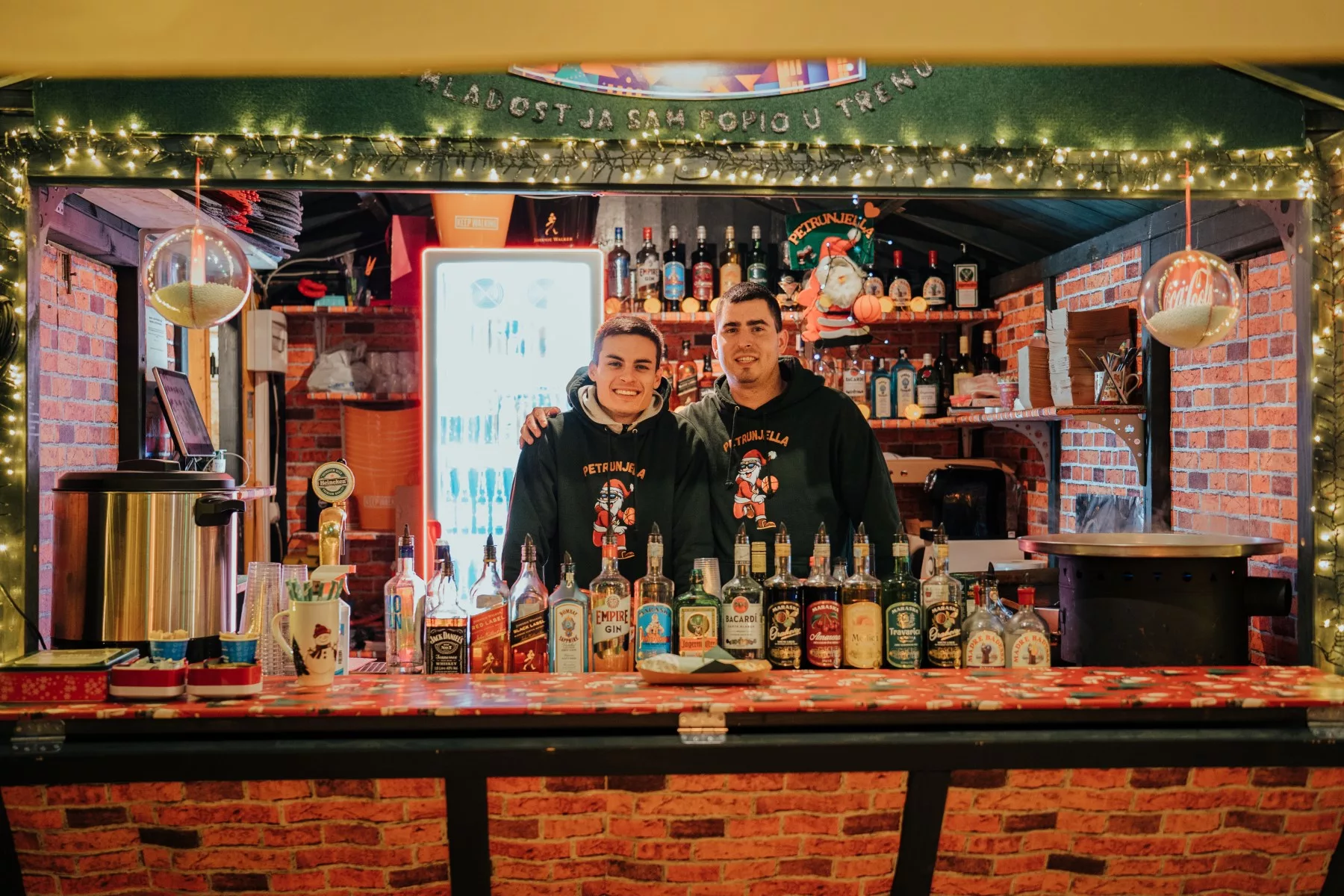 Kućica koja je zadnja u nizu gledano od Kapetanove kule zove se Petrunjella i zajedno su je otvorili prijatelji iz djetinjstva, Luka Žilić i Matej Segarić. Primjetili smo odmah da su im malene košarkaške lopte, uz Božićne dekoracije, glavni ukras na kućici, a uskoro smo dobili i objašnjenje – ovi momci godinama su skupa trenirali košarku, obožavaju taj sport, a i dolaze iz grada košarke.