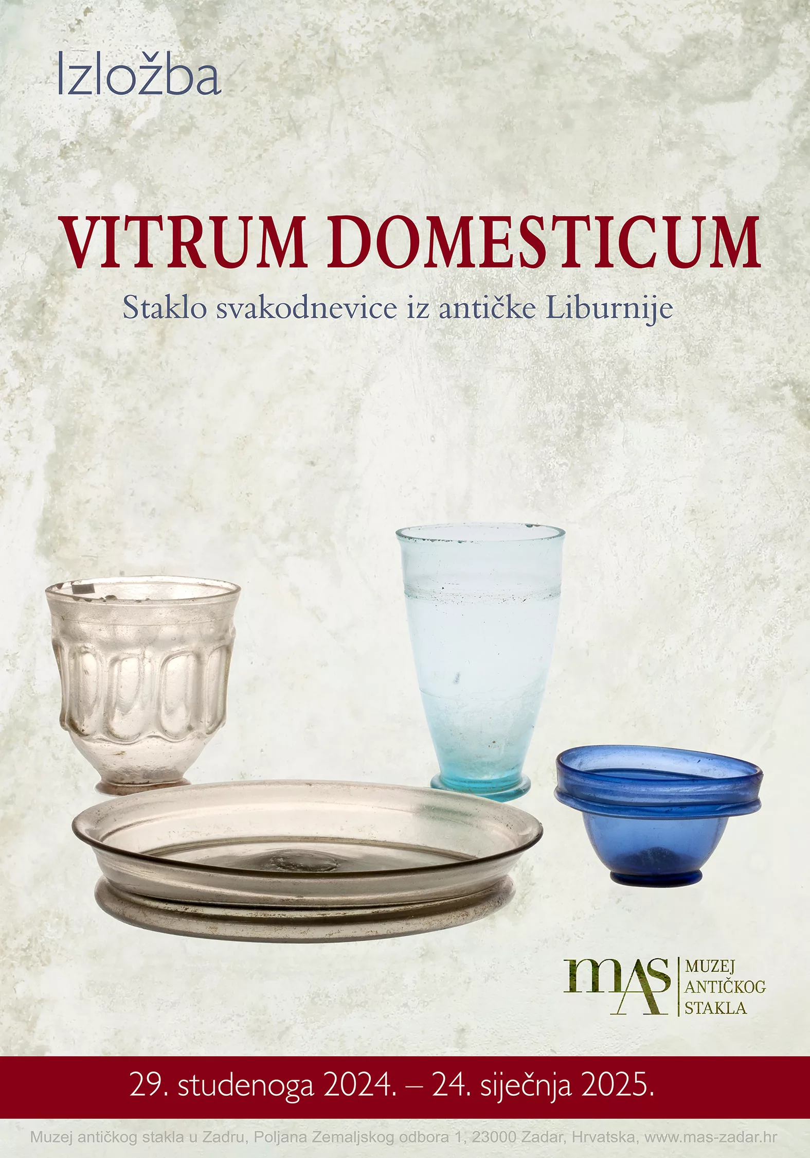 U sklopu obilježavanja Dana grada Zadra i blagdana sv. Krševana, Muzej antičkog stakla u Zadru u petak, 29. studenoga 2024. godine s početkom u 12 sati predstavlja izložbu „Vitrum domesticum“ koju potpisuje muzejski savjetnik dr. sc. Berislav Štefanac.