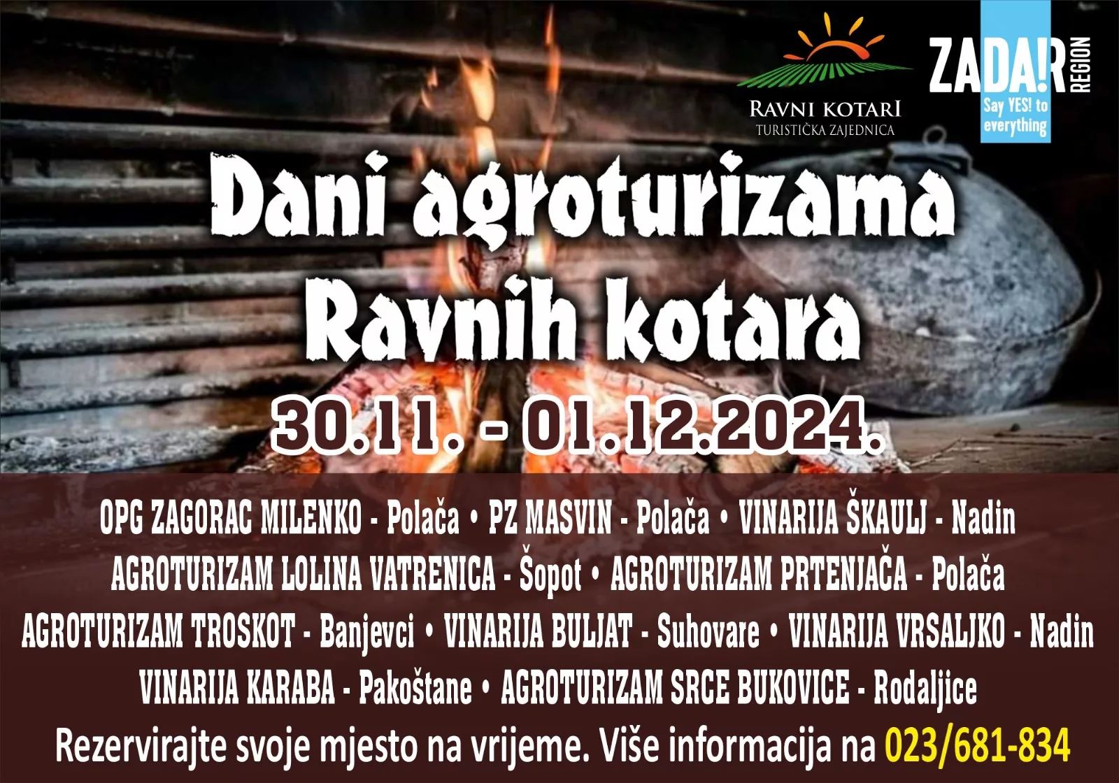 U organizaciji Turističke zajednice Ravni kotari uz potporu Turističke zajednice Zadarske županije u cilju promocije Bukovice i Ravnih kotara 30.11. i 01.12.2024. održat će se manifestacija „Dani otvorenih vrata agroturizama Ravnih kotara“.