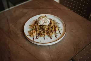 Trenutni favorit je waffle sa kuhanim jabukama u cimetu sa šlagom uz dodatak sladoleda od vanilije.
