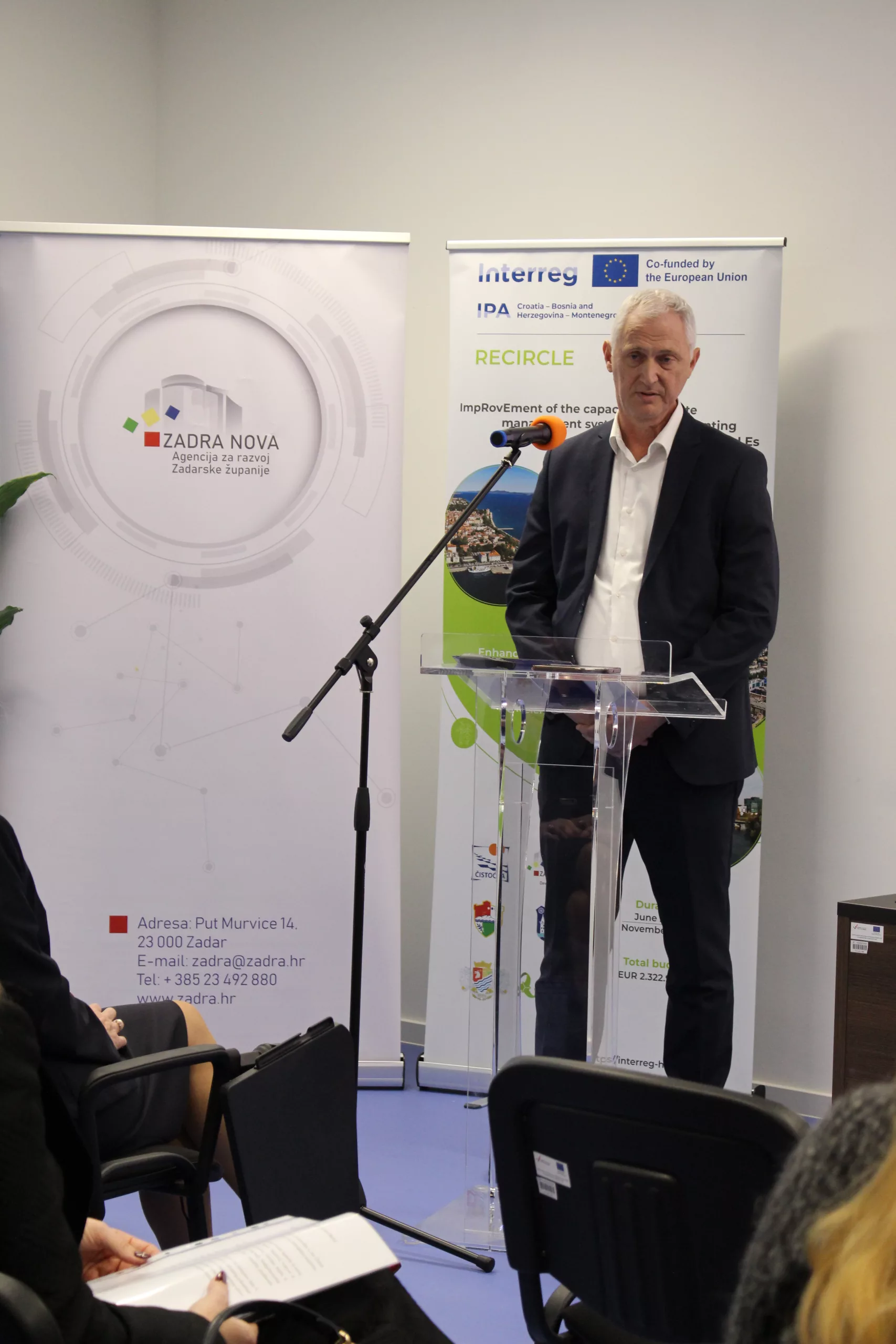 Početna konferencija projekta RECIRCLE održana je u Inkubatoru „Bili Brig“ u Zadru. Konferenciju je organizirala Agencija za razvoj Zadarske županije ZADRA NOVA u suradnji s Čistoćom Zadar. Projekt RECIRCLE sufinanciran je u okviru Interreg VI-A IPA Programa Hrvatska – Bosna i Hercegovina – Crna Gora 2021. – 2027.