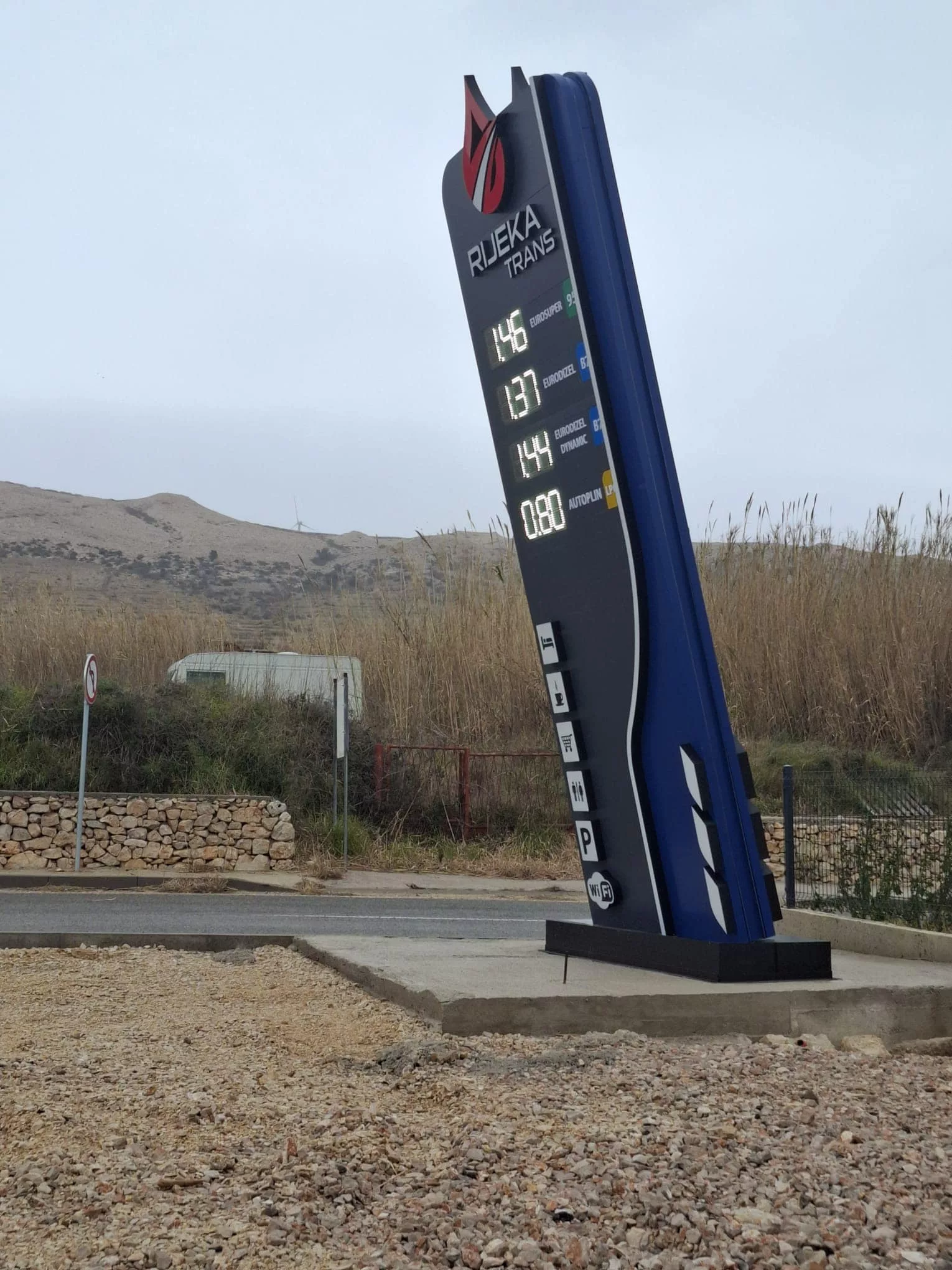 Olujna bura koja nosi sve pred sobom, uspjela je srušiti i ovaj displej na benzinskoj postaji u Pagu.