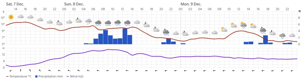Vjetar slab, ponegdje do umjeren južni i jugoistočni. Duž obale umjerena bura i sjeverni vjetar, navečer jugo u jačanju. Najviša dnevna temperatura od 5 do 10, na Jadranu od 10 do 15 °C.