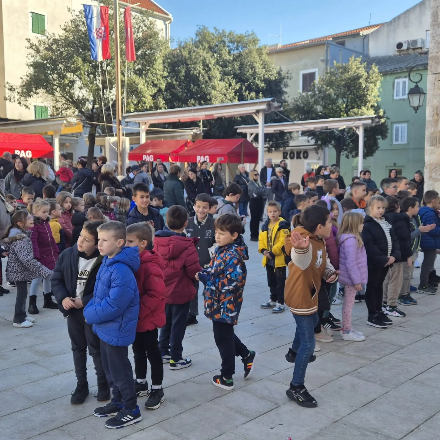 U blagdanskom ozračju, okupljene su oduševili nastupi Dječjeg zbora Vijolice i starijih skupina Dječjeg vrtića Paški mališani koji su kroz pjesmu i igru donijeli radost i veselje na trg.