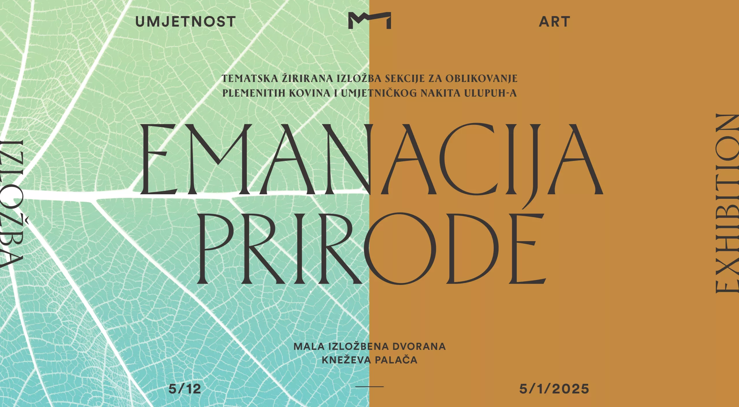 Narodi muzej Zadar poziva na otvorenje tematske žirirane izložbe Sekcije za oblikovanje plemenitih kovina i umjetničkog nakita ULUPUH-a, pod nazivom „Emanacija prirode“ u četvrtak, 5. prosinca 2024. godine u 19 sati u Maloj izložbenoj dvorani Kneževe palače.
