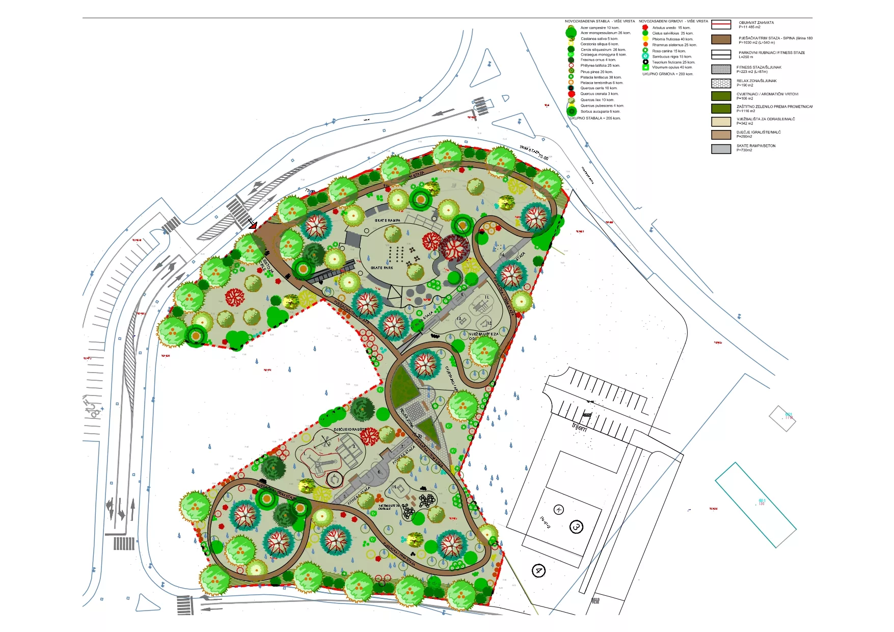 Nove zelene površine imat će posađene autohtone vrste, a planira se sadnja 205 novih stabala i 200 grmova.