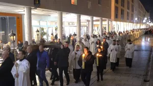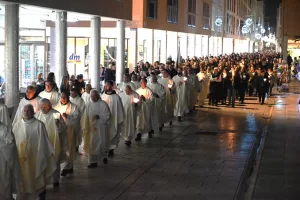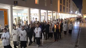 Uz dva ruba procesije cijelom njenom dužinom, veliku jubilejsku svijeću nosili su predstavnici obitelji iz 117 župa Zadarske nadbiskupije, a ostali vjernici nosili su male svijeće. Veliku svijeću predstavnici obitelji odnijeli su u svoje župe te će jubilejska svijeća biti postavljena u sve župne crkve u Nadbiskupiji. Za vrijeme procesije puk je pjevao božićne pjesme. Po dolasku na Trg sv. Stošije ispred otvorenih vrata katedrale, križ nošen u procesiji bio je uzdignut pred narodom. Potom je nadbiskup Zgrablić kleknuo pred tim velikim križem i poljubio ga.