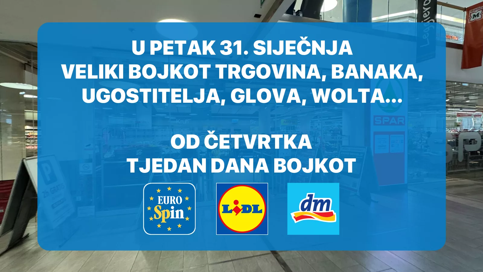 Kako su objavili na Facebook stranici “Halo, inspektore” odlučeno je kako se u petak, 31. siječnja, održava drugi bojkot svih trgovina.