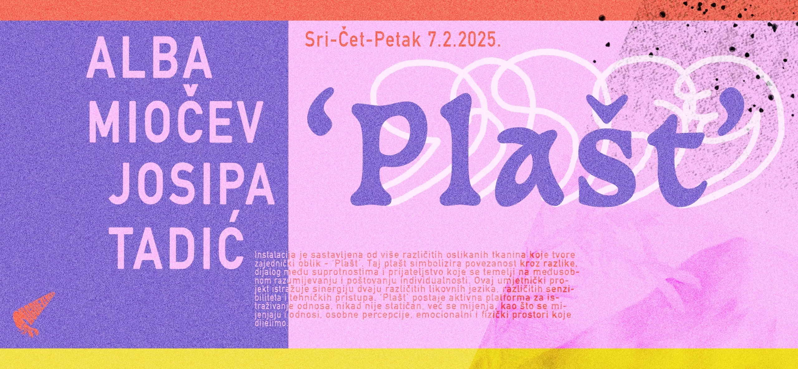 U Nigdjezemskoj se 7. veljače 2025. u 19 sati otvara samostalna izložba dviju mladih umjetnica Albe Miočev i Josipe Tadić, naziva “Plašt”.