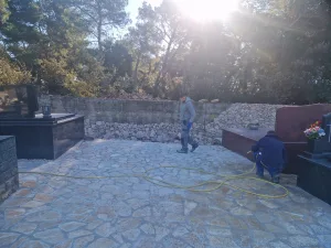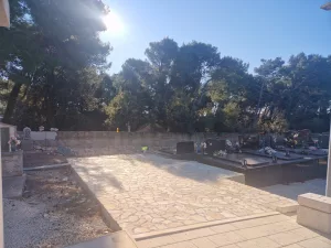 Općina Povljana trenutno provodi radove na uređenju groblja s ciljem poboljšanja izgleda i funkcionalnosti ovog važnog prostora. Radovi uključuju popločavanje podova i zidova kamenom, čime će se osigurati dugotrajnija i estetski primjerenija površina.