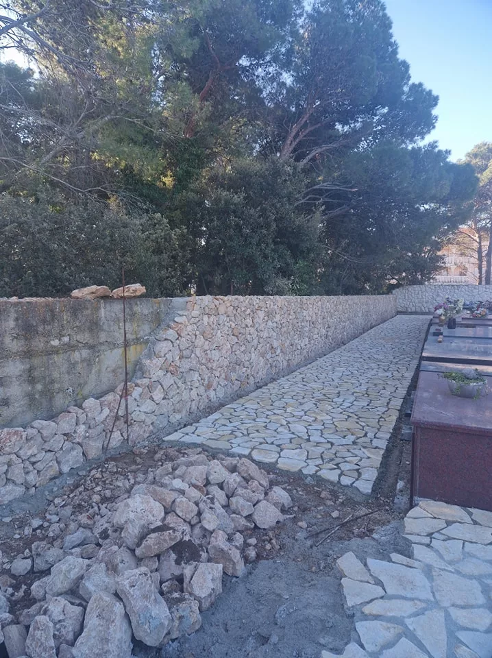 Općina Povljana trenutno provodi radove na uređenju groblja s ciljem poboljšanja izgleda i funkcionalnosti ovog važnog prostora. Radovi uključuju popločavanje podova i zidova kamenom, čime će se osigurati dugotrajnija i estetski primjerenija površina.