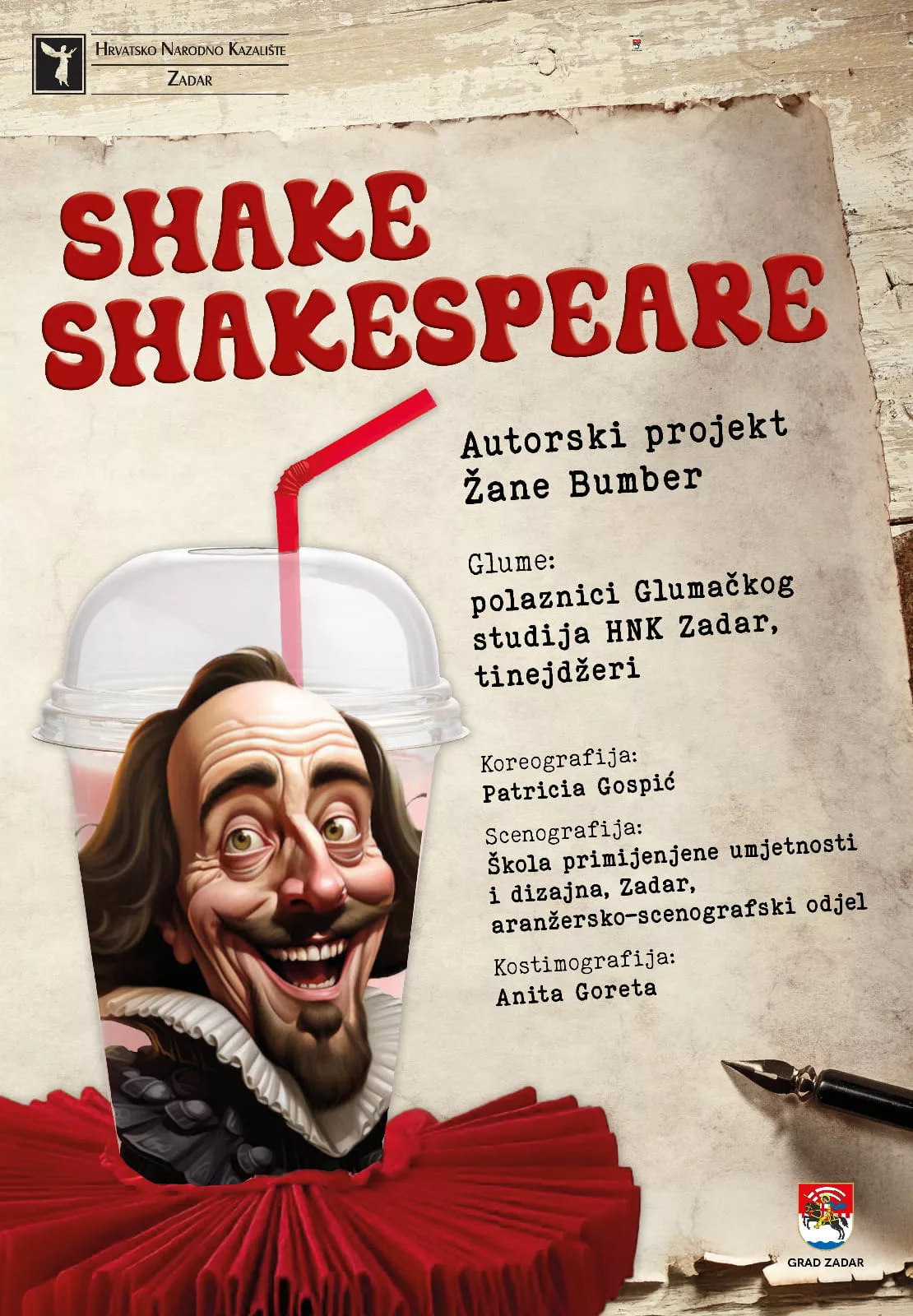 HNK Zadar poziva na premijeru predstave “Shake Shakespeare” koja će se održati u srijedu, 19. veljače u 11:00 i u 18:00 sati u Hrvatskom narodnom kazalištu Zadar.