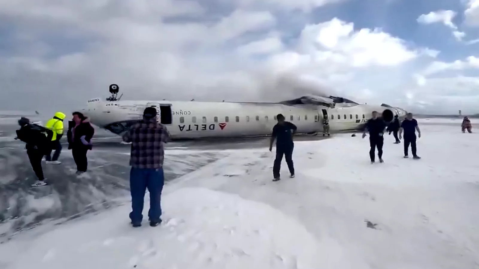 Video koji je objavio News Channel3 Now prikazuje avion Delta Air Linesa na snijegom prekrivenoj pisti, dok se ljudi udaljavaju od aviona. Od osam ozljeda, jedna je kritična, a ostale su bile blage do umjerene, rekao je dužnosnik regionalne bolničarske službe Lawrence Saindon.