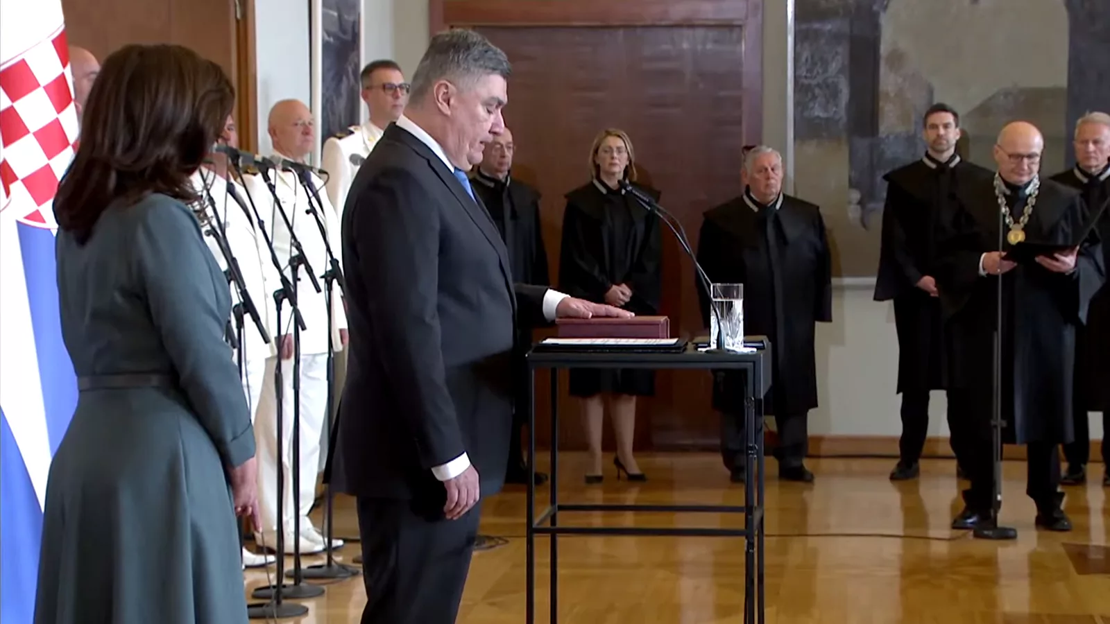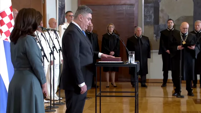 Predsjednik Zoran Milanović prisegnuo je pred predsjednikom Ustavnog suda. Nakon što je izgovorio tekst prisege, predsjednik je i potpisao.