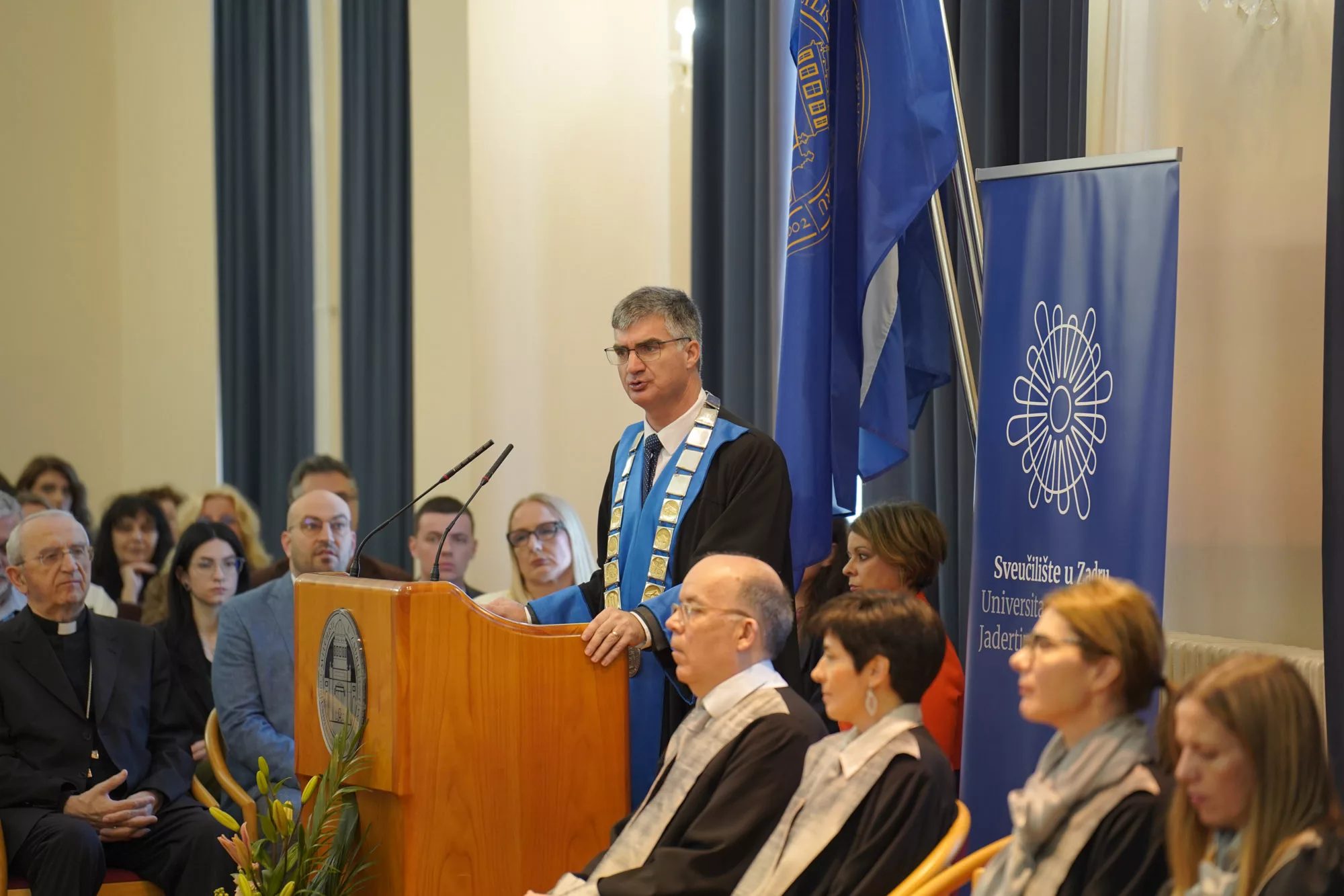 – Ono što bih htio poručiti na ovaj današnji dan kada obilježavamo obljetnicu obnove zadarskog Sveučilišta, da, poučeni i ponosni na našu tradiciju jer se nadovezujemo na najstarije sveučilište osnovano na tlu Hrvatske još 1396. godine, u suvremenom trenutku promišljamo koja je uloga akademske zajednice u društvu i gospodarstvu. Ona je, naravno, jako velika i zbog toga imamo i veliku odgovornost i zbog toga što nismo samo ustanova u kojoj se razvija i promiče znanost, već se obrazuju i stručnjaci u različitim disciplinama koji bi na temelju kompetentnosti trebali zauzeti odgovarajuća mjesta u našoj zajednici kako bi doista cijela naša zajednica mogla napredovati isključivo na načelima znanja, sposobnosti i najviših etičkih vrijednosti, rekao je, između ostalog.